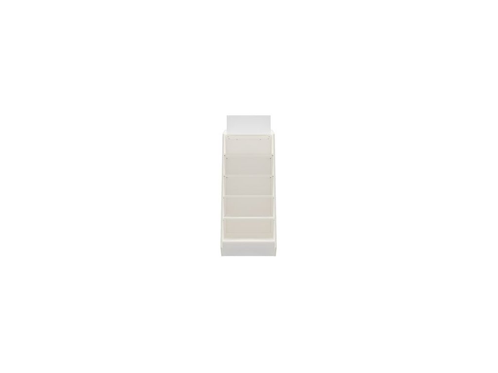 Prodejní stojan určený k podpoře impulsního prodeje má plná záda, dovnitř lze umístit 4 police pro uložení zboží. Prodejní regál se dodává v bílém dekoru.