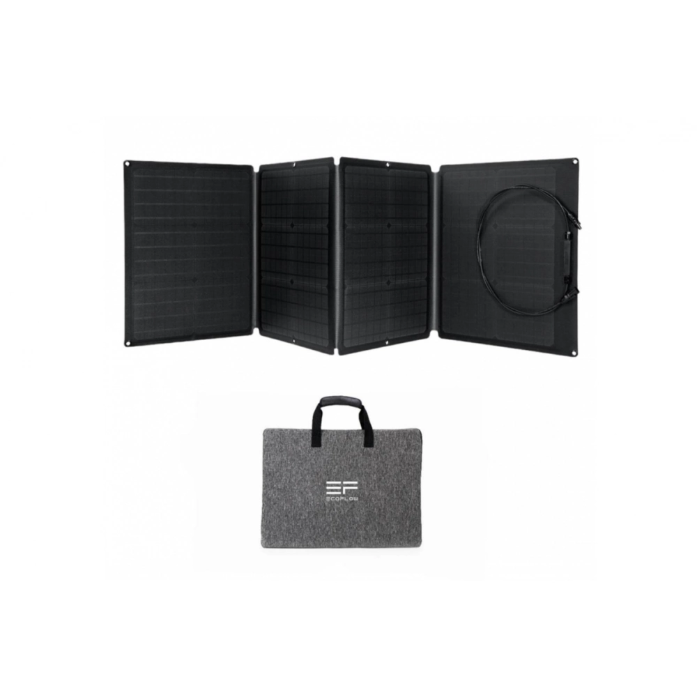 Solární panel - vysoce efektivní monokrystalické křemíkové články, výkon 110 W, voděodolné, skladné a polohovatelné. Se solárním panelem EcoFlow o výkonu 110 W nemusíte mít obavy z míst, kde není elektrická zásuvka. Panel se vyznačuje vysokou efektivitou a díky účinným monokrystalickým křemíkovým článkům pohodlně dobijete bateriové stanice EcoFlow.