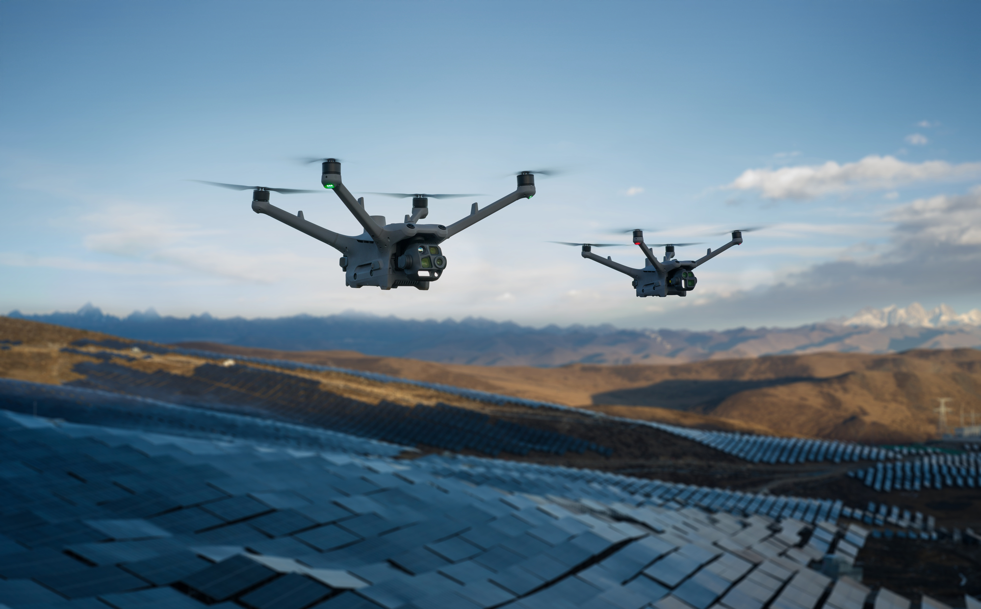 - Drony Matrice 4D disponují čtyřmi vysoce citlivými širokoúhlými objektivy s vylepšenou vizuální navigací v nízkém světle. Nový noční režim poskytuje plnobarevné noční vidění.